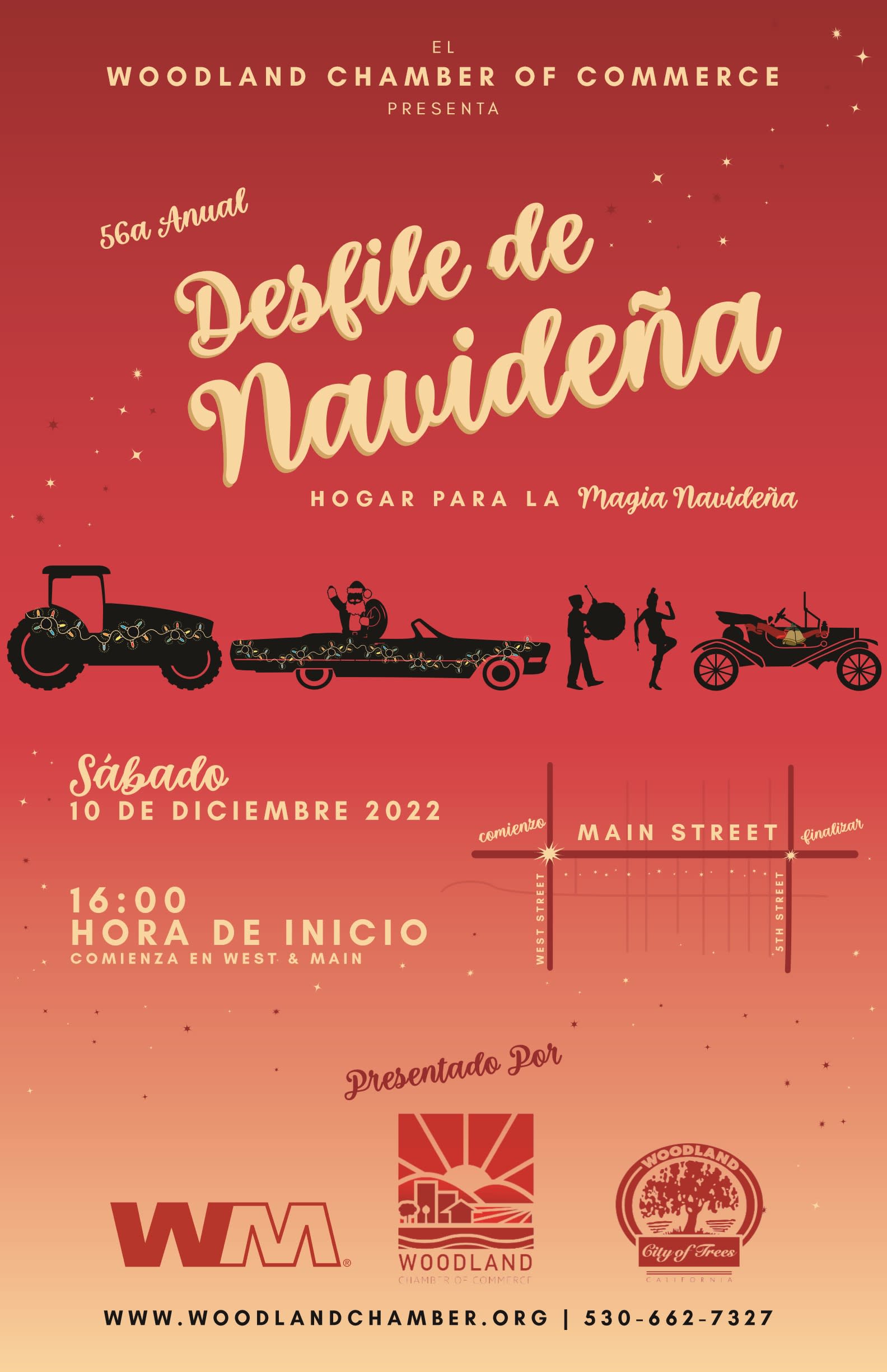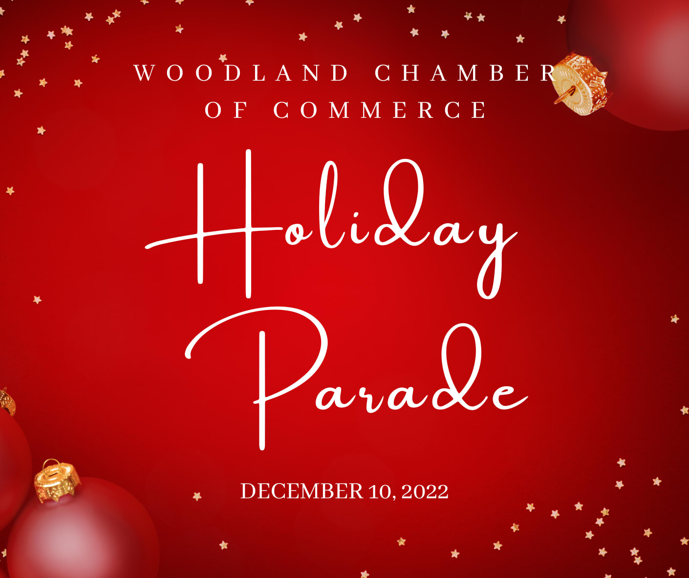 The Woodland Chamber of Commerce is proud to announce the long-awaited return of the 56th annual Holiday Parade! After a 2-year hiatus due to the COVID pandemic, the parade will once again ride down Main Street on December 10th this year, with the theme "Home for the Holiday Magic." We want to thank everyone in our community for their patience as well as the City of Woodland for sponsoring this event.